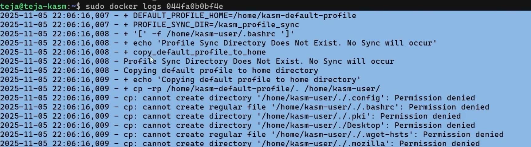 - Try launching a workspace on Kasm – if it fails, list all containers: