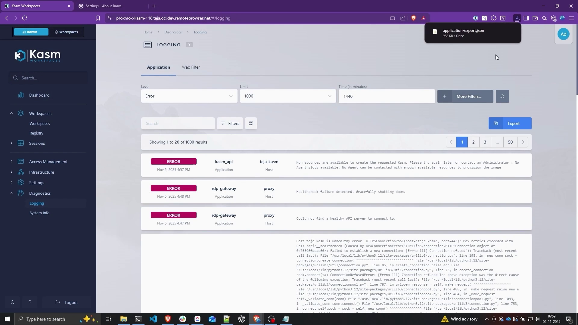 If Kasm is producing errors, timeouts, or unexpected behavior, include system logs from your deployment.